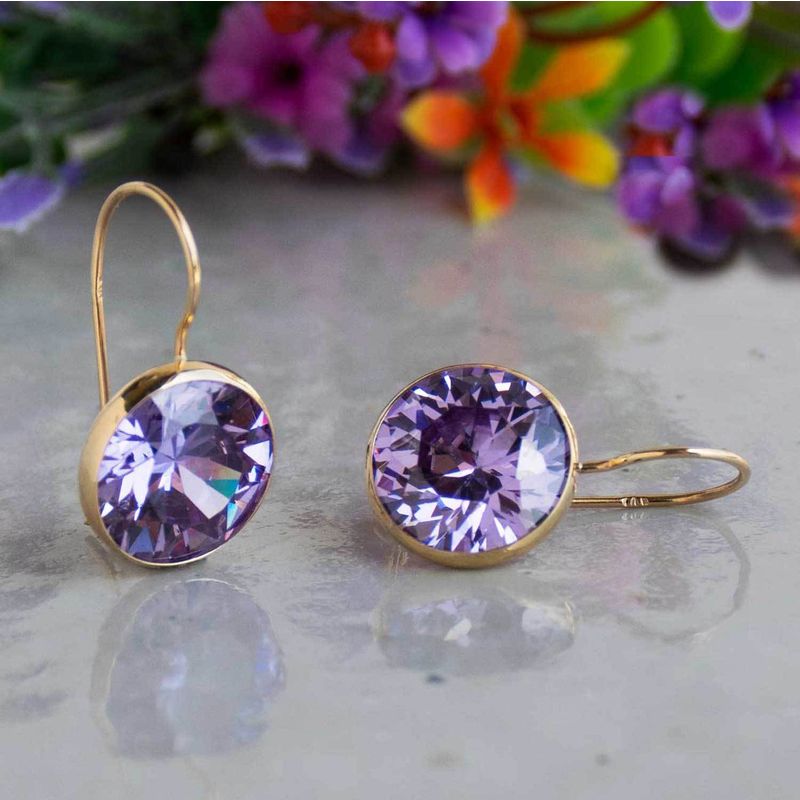 עגילים תלויים זהב 14 קראט זירקון סגול