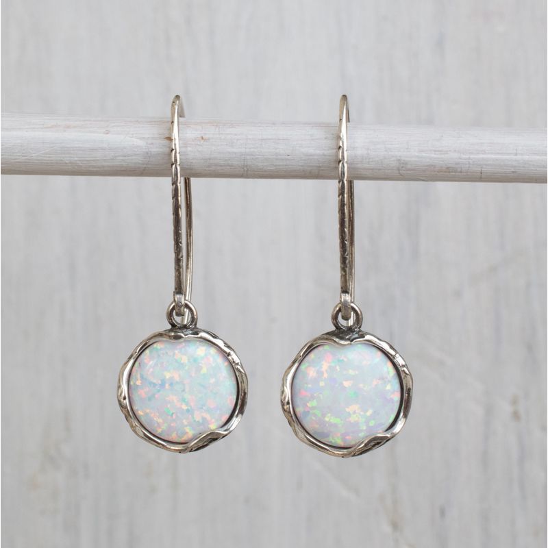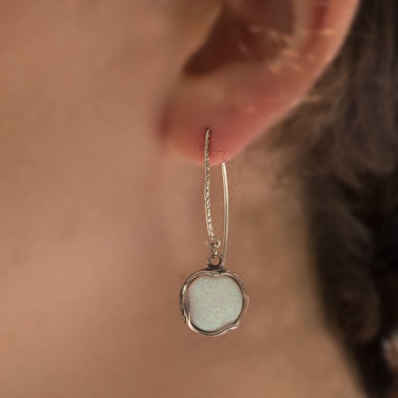 עגילי כסף מעוטרים וינטג' אבן אופל לבן