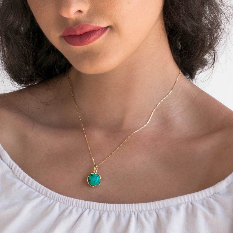 תליון עדין עגול זהב 14 קראט באופל כחול