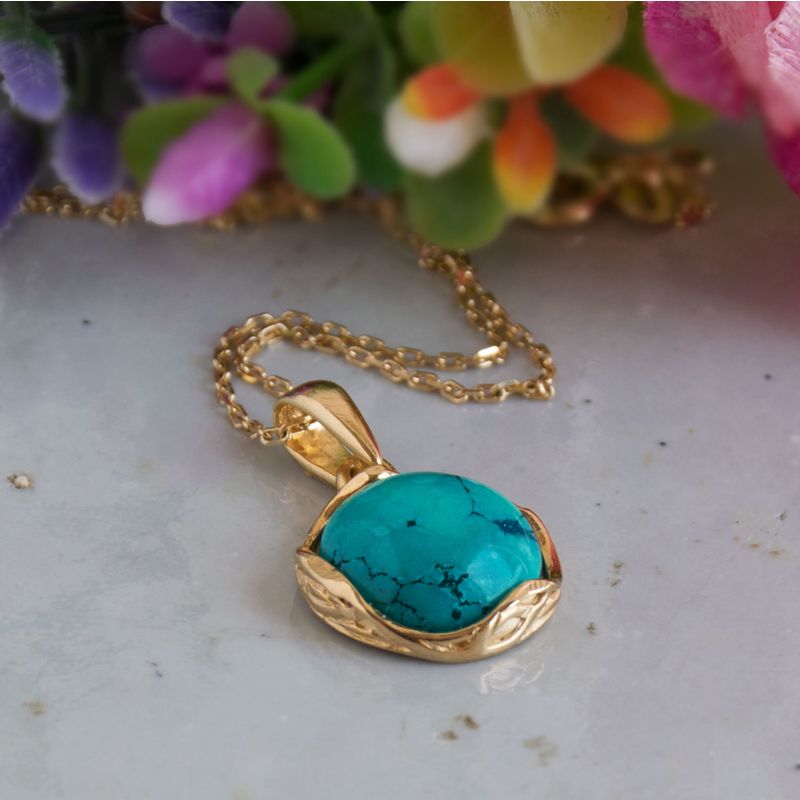 שרשרת כסף ציפוי זהב אבן טורקיז