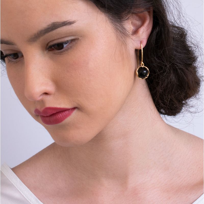 עגילי זהב 14 קראט אבן אוניקס שחור