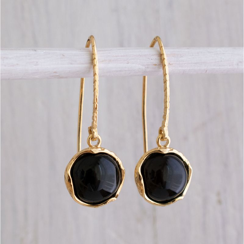 עגילים תלויים וינטג' אבן אוניקס ציפוי זהב