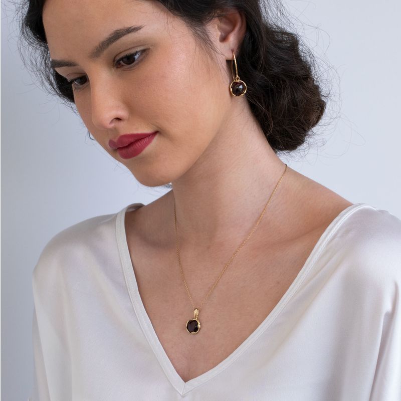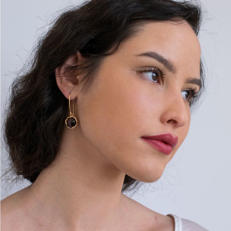 עגילי וינטג' ואבן סמוקי קווארץ ציפוי זהב