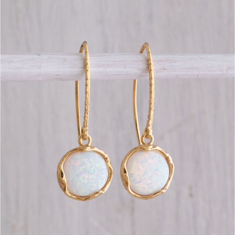 עגילי חישוק זהב 14 קראט אופל לבן טיפה 18 מ"מ