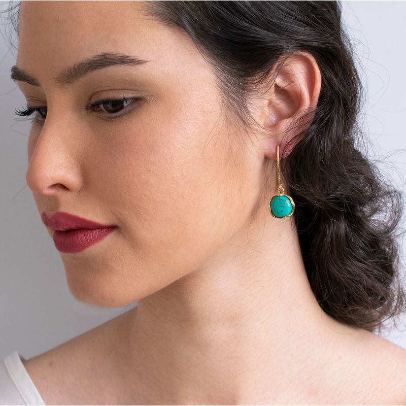 עגילים תלויים וינטג' אבן טורקיז ציפוי זהב