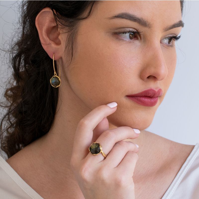 עגילי וינטג' אבן לברדורייט ציפוי זהב
