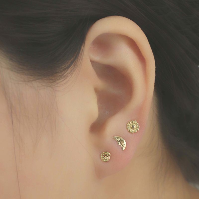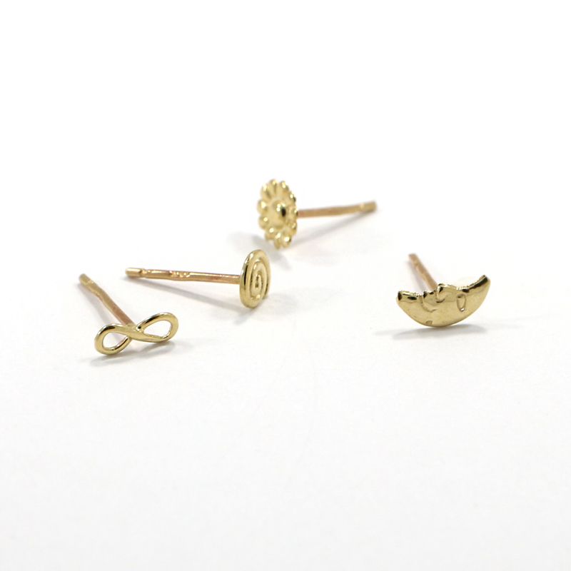 עגילי זהב 14 קראט צמודים ירח סוגרי זהב