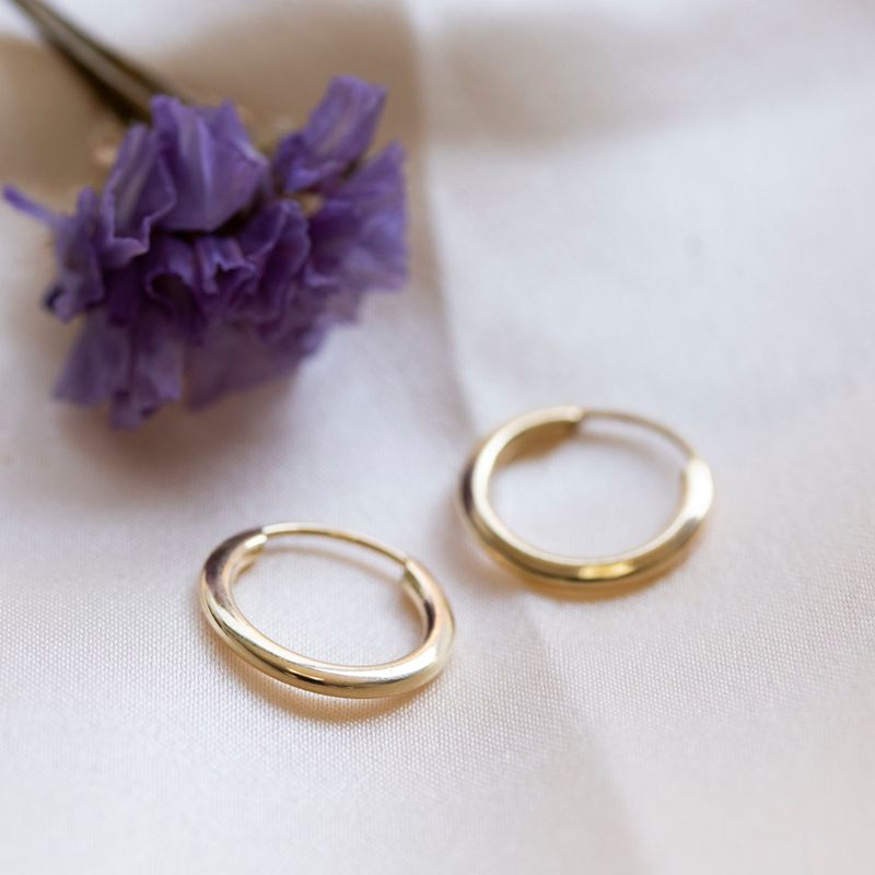 עגילי חישוק מזהב 14 קראט בקוטר פנימי של 12 מ"מ ובעובי 1.5 מ"מ. תכשיט קלאסי המעניק מראה עדין ונשי, ומשתלב נהדר עם כל הופעה, יומיומית או חגיגית.