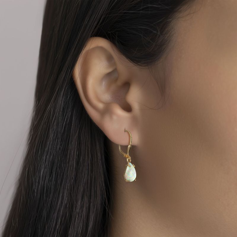 עגילי ציפוי זהב לברבק טיפה בשיבוץ אופל לבן