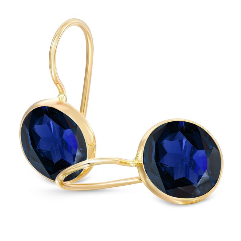 עגילי זהב קלאסיים 14 קראט ספיר מלאכותי