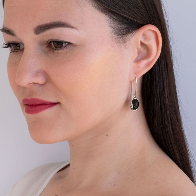 עגילי כסף מעוטרים וינטג' אבן לאפיס