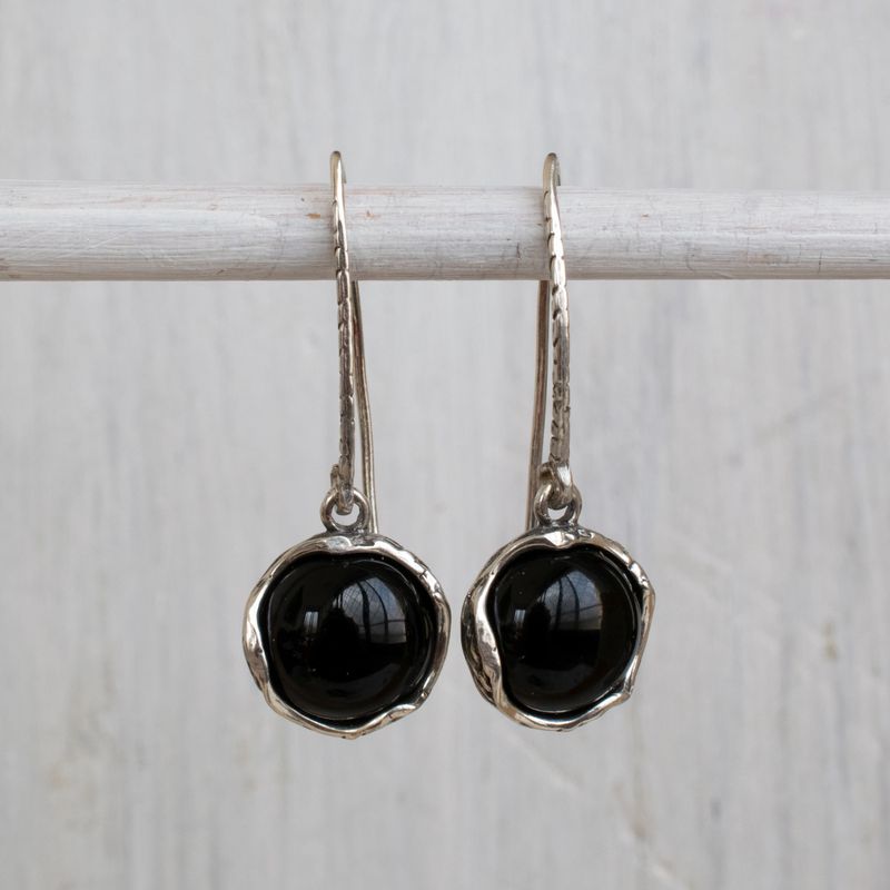 עגילי כסף מעוטרים וינטג' אבן אוניקס