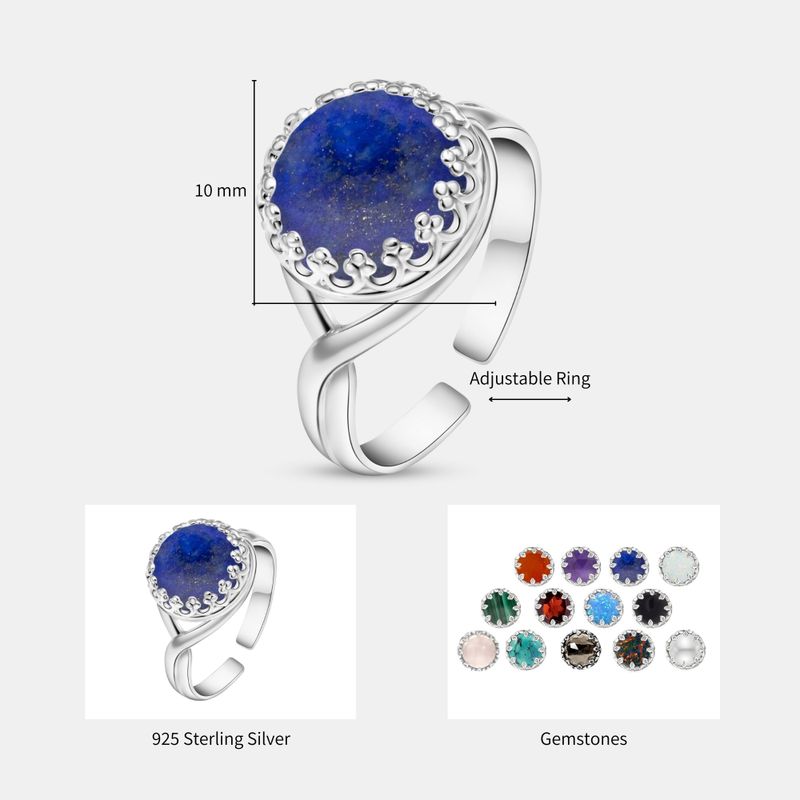 טבעת כסף אמיתי 925 פתוחה אבן אופל כחול לחריטה