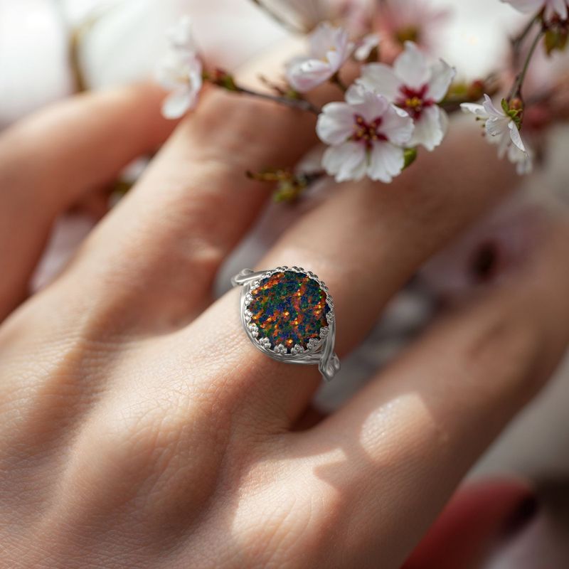 טבעת כסף 925 פתוחה אבן אופל לבן