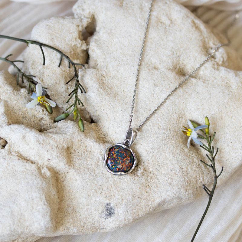 תליון וינטג' מכסף 925 אבן אופל שחורה