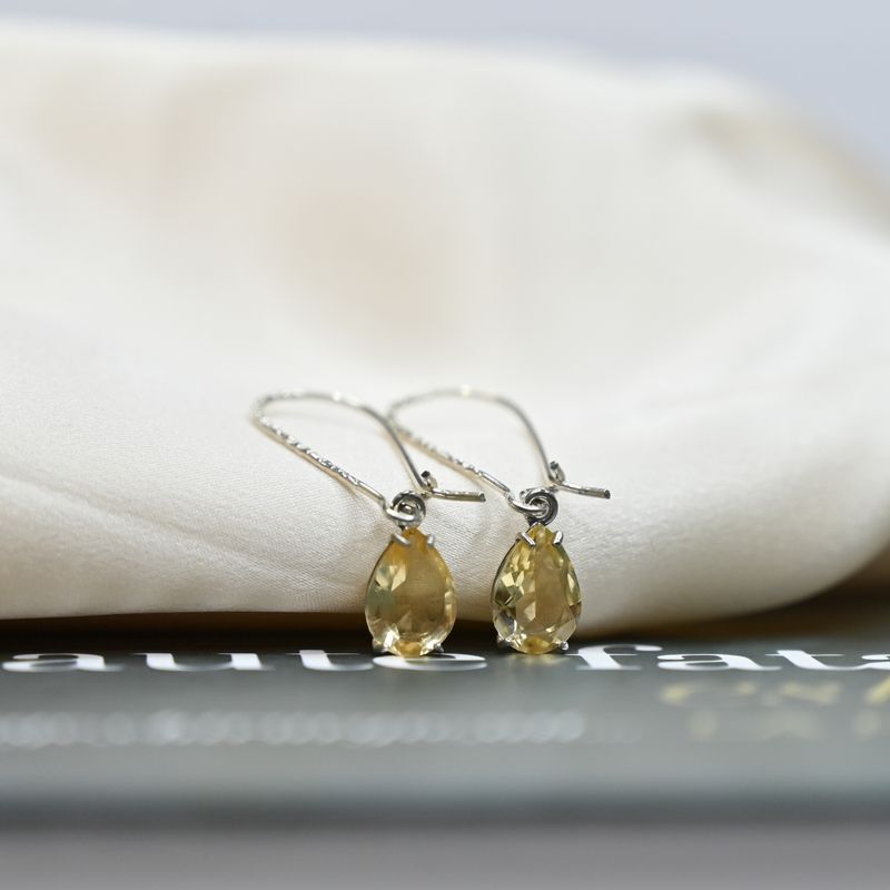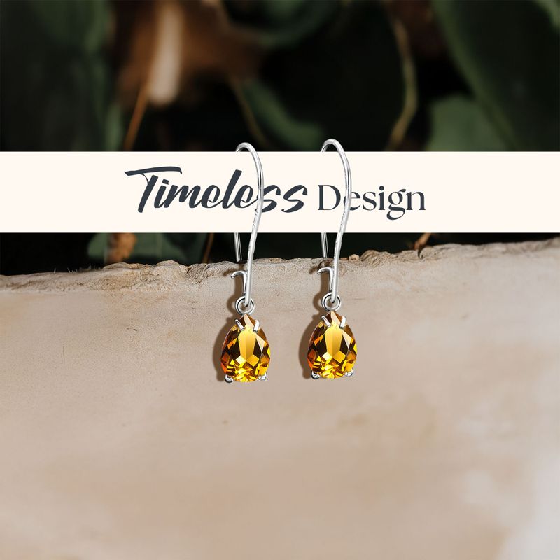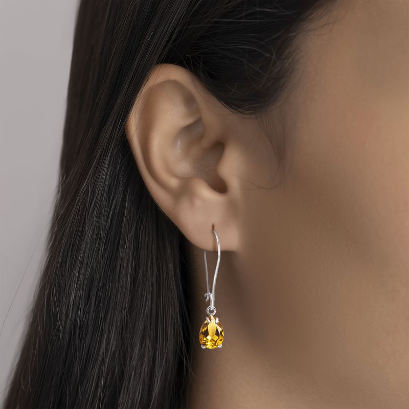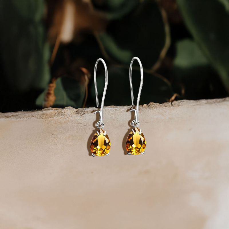 עגילים בעיצוב אלגנטי עם שיבוץ סיטרין מלאכותי בגוון צהוב שמשי בצורת טיפה. מושלמים למראה מואר ואופטימי. הידעת? סיטרין מחזק שמחה, ביטחון עצמי ואנרגיה חיובית.