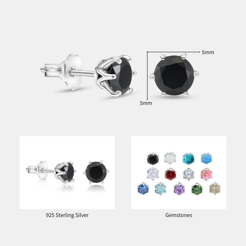 עגילי כסף אמיתי 925 בשיבוץ זירקון שחור 5 מ"מ – עיצוב קלאסי ונועז