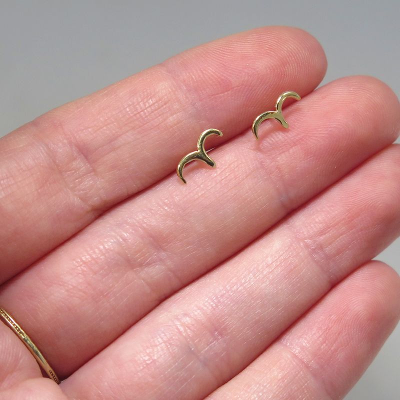 עגילי זהב 14 קראט צמודים בצורת שחף בעיצוב ייחודי, מקורי וצעיר, מיוצרים בעבודת יד ישראלית