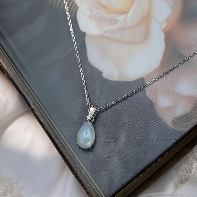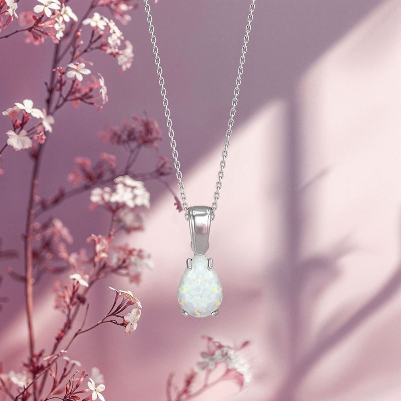 תליון טיפה קלאסי כסף אמיתי אופל לבן