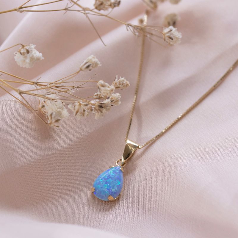 תליון זהב עדין 14 קראט באופל כחול טיפה