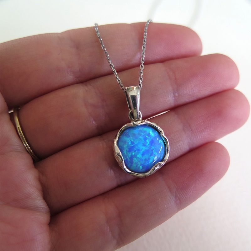 ♥ משובץ באבן אופל כחולה 12 מ"מ מלאכותית