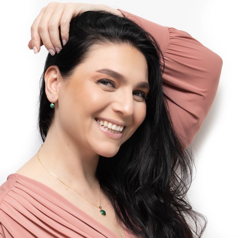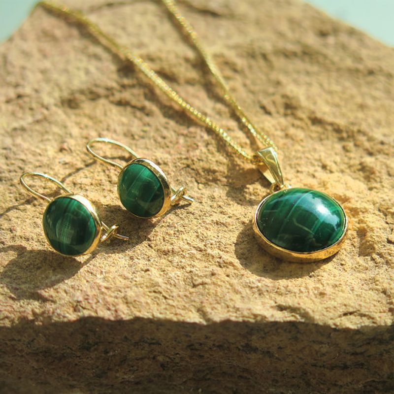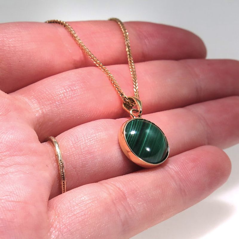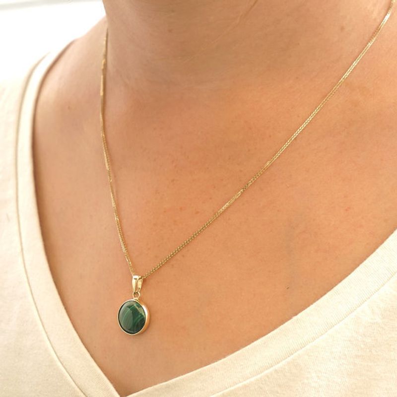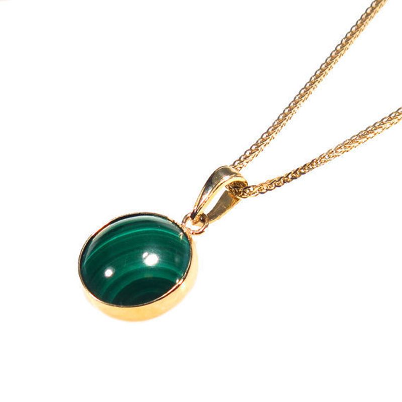 תליון זהב משובץ מלכית ירוקה יפהפייה. זהב 14 קראט, מיוצר בישראל בעבודת יד