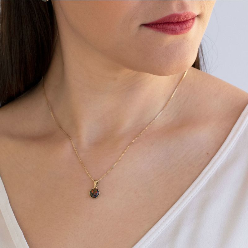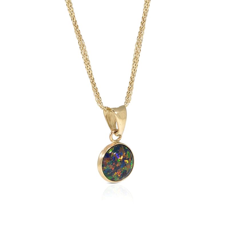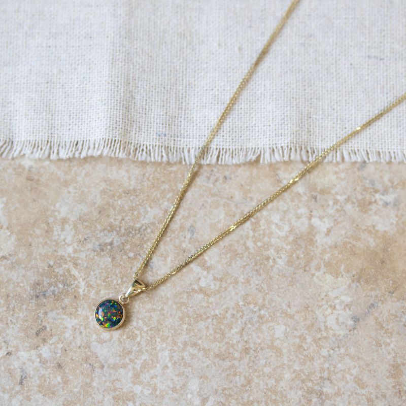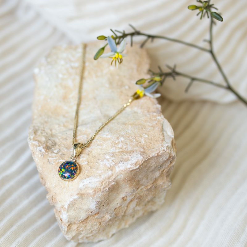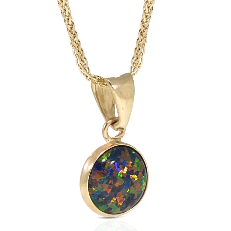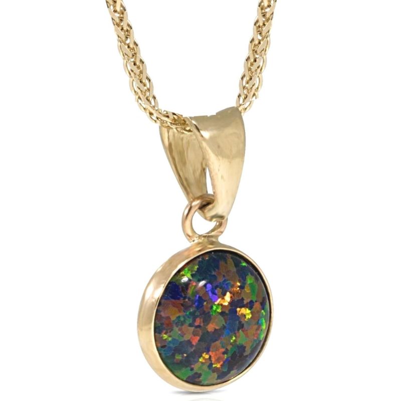 תליון חלק מזהב צהוב 14 קראט עם שיבוץ אבן אופל שחור מלאכותי בקוטר 8 מ"מ בליטוש קבושון עגול. עיצוב מינימליסטי שמדגיש את עומק האבן ויופיה. מושלם לשילוב עם שרשרת דקה למראה אלגנטי ונקי, או כחלק ממראה שכבות. מגיע באריזת מתנה יוקרתית – מושלם למתנה אישית עם משמעות. הידעת? אופל שחור הוא סמל לעוצמה פנימית, הגנה רוחנית וביטוי רגשי. האבן נחשבת כמחזקת אינטואיציה ויצירתיות.