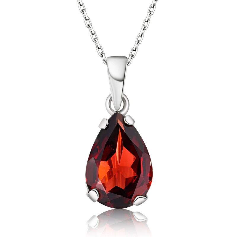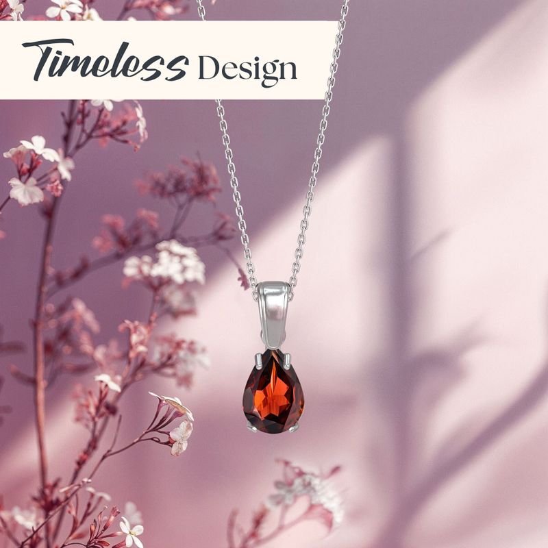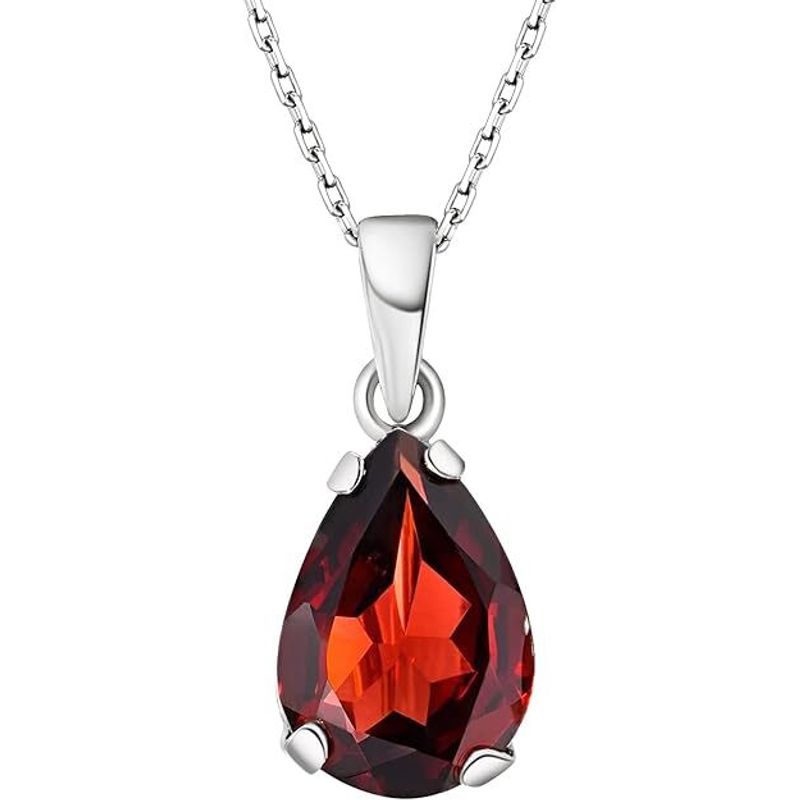 • תליון כסף משובץ אבן גרנט בגוון אדום עמוק ומלא נוכחות.