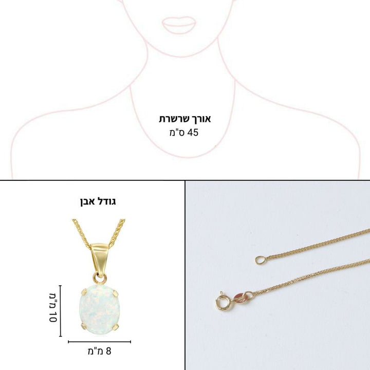 תליון זהב 14 קראט בשיבוץ אבן מונסטון לבנה במראה נשי קלאסי, מיוצר בעבודת יד ישראלית מקורית,