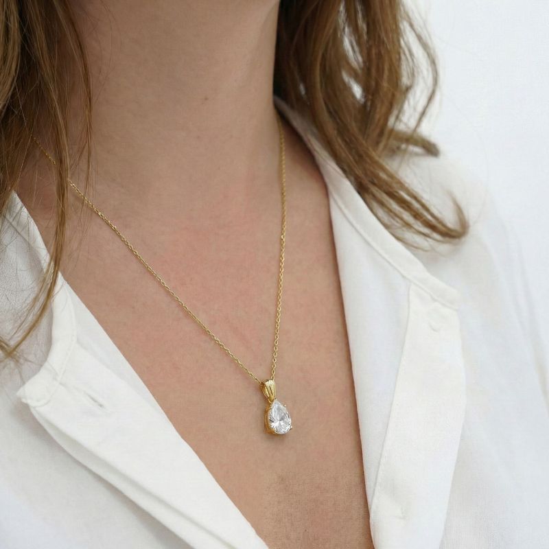 עשוי מכסף 925 מצופה זהב, ומשובץ באבן טיפה מרהיבה בגודל 7x10 מ״מ. העיצוב הקלאסי, עם מראה עדין אך בולט, מתאים לכל סגנון – לבד או בשילוב עם עגילים תואמים. תכשיט שמביא איתו שלווה, אור ורכות – מושלם ליום-יום וגם לרגעים מיוחדים.