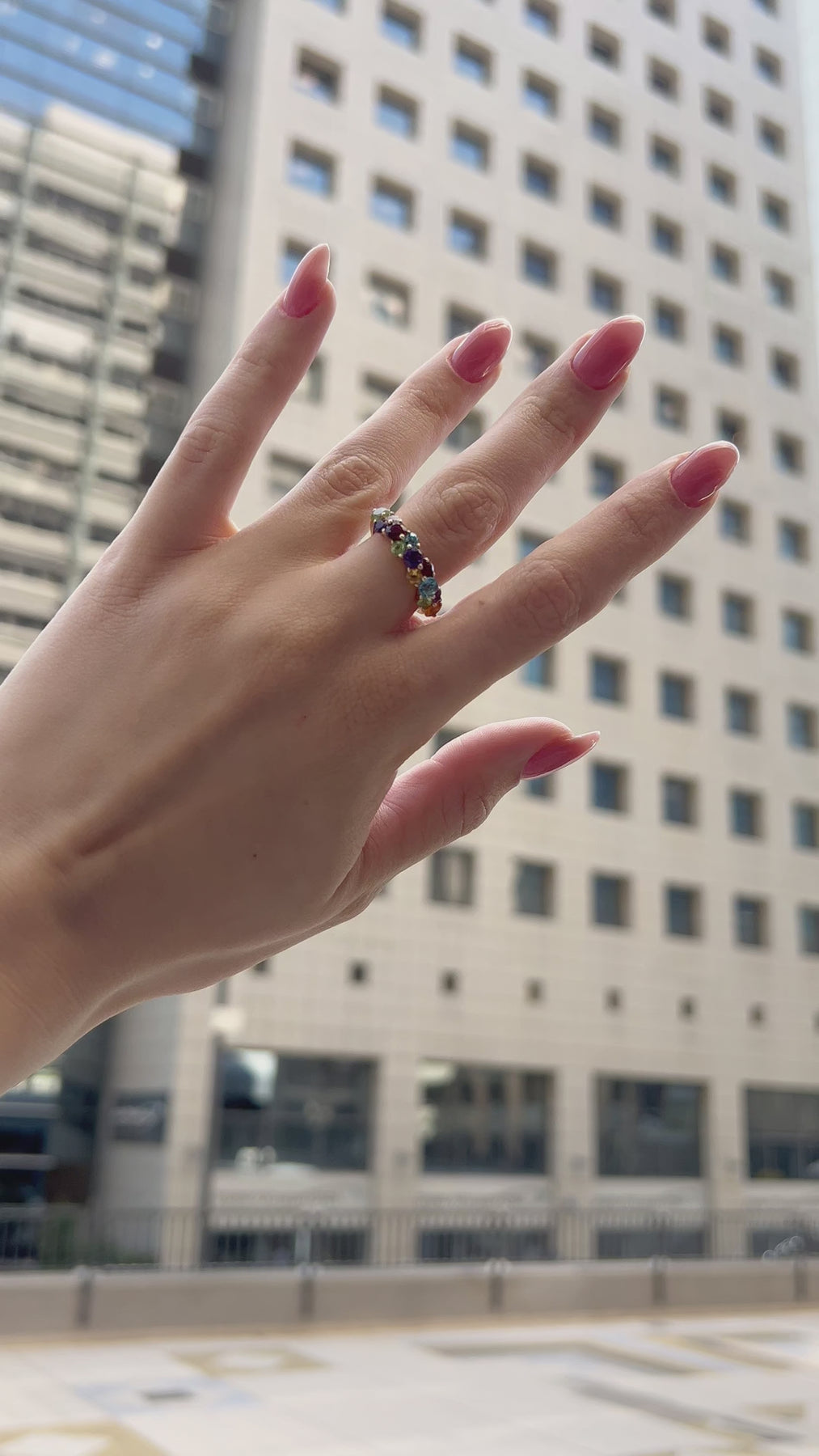 טבעת זהב 14 קראט עם מיקס אבני חן צבעוניות