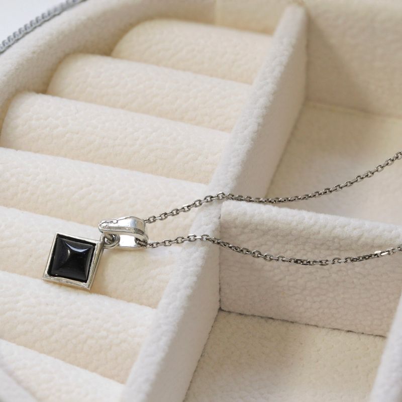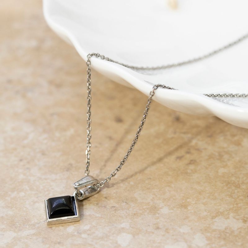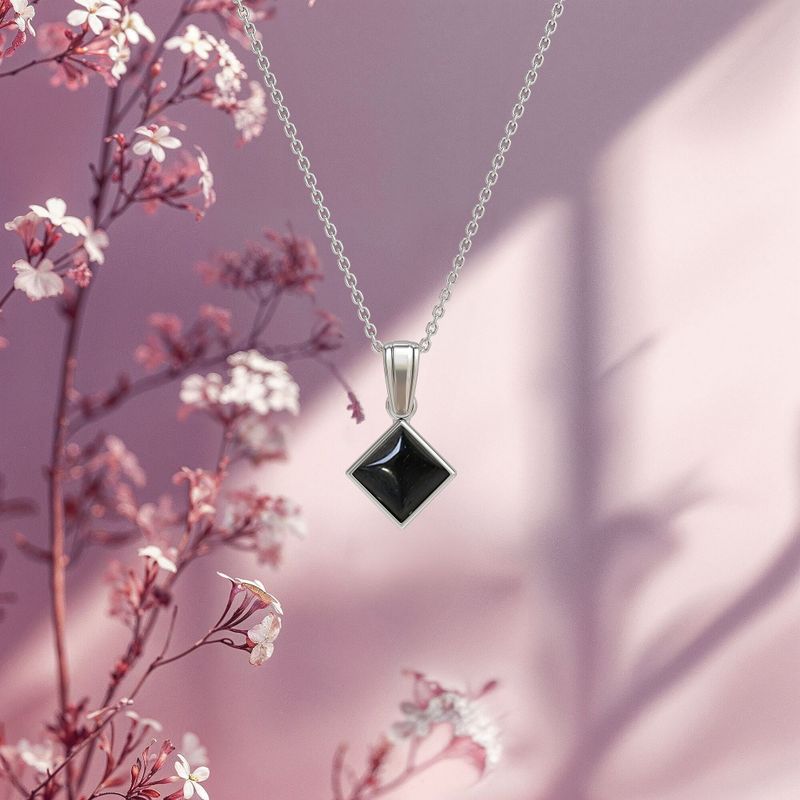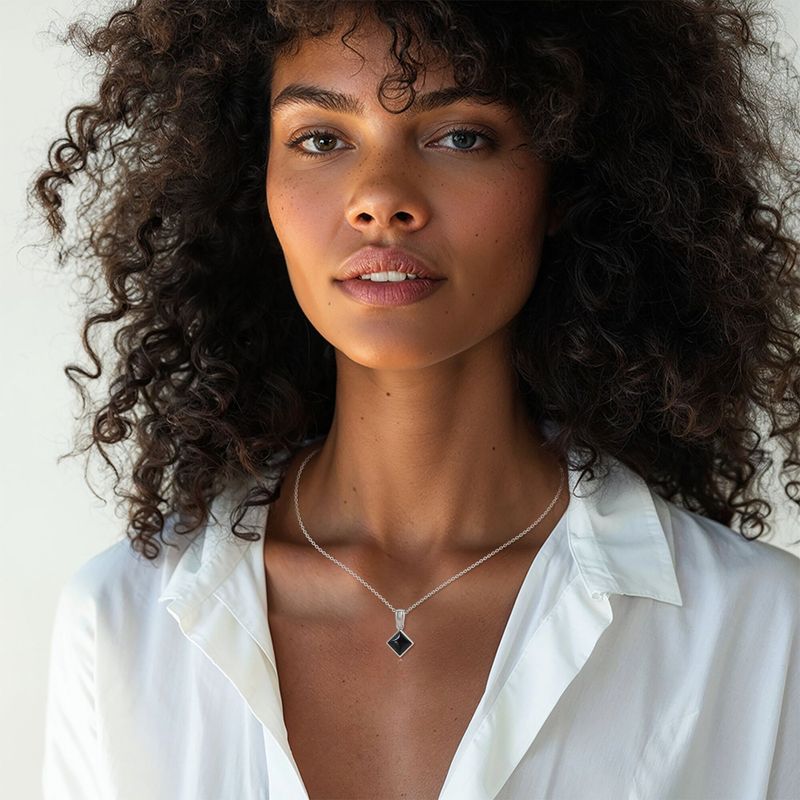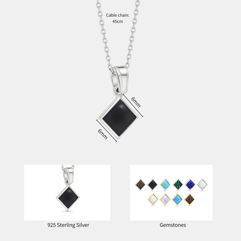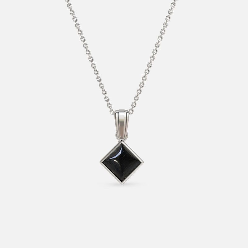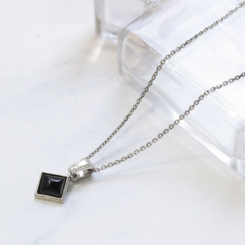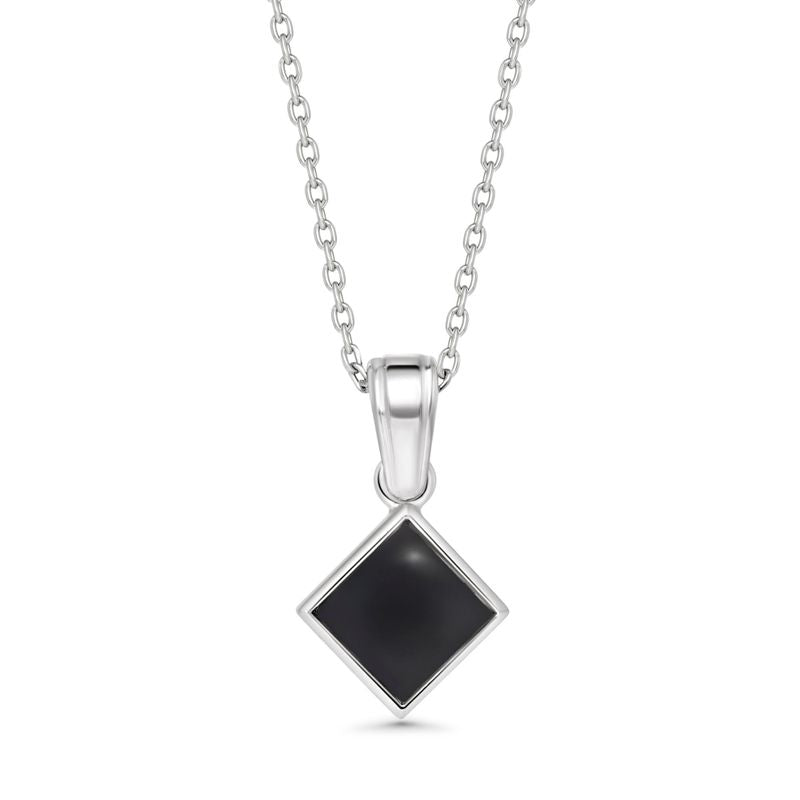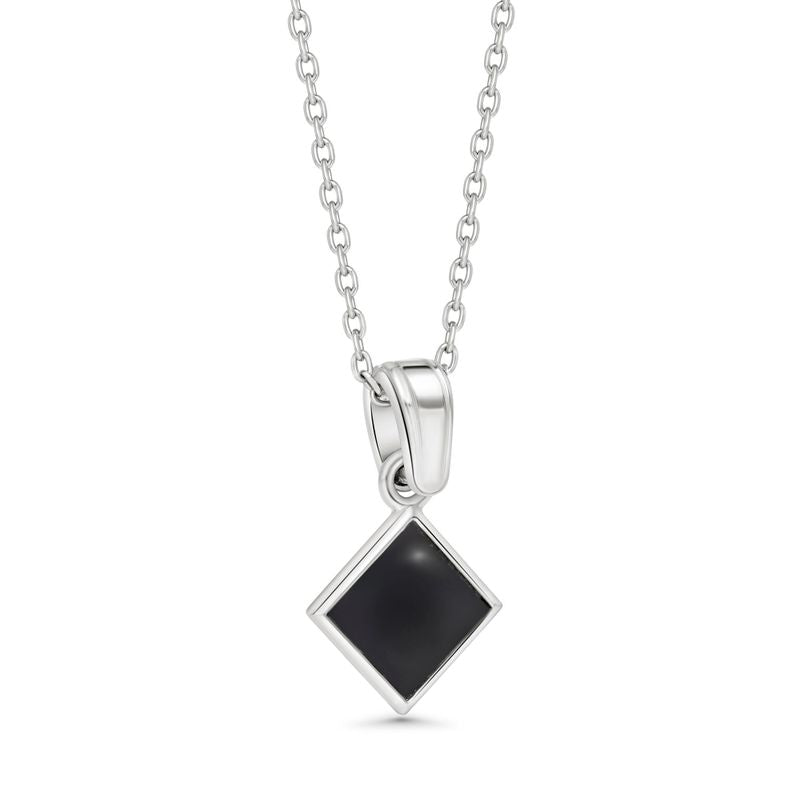 תליון מכסף סטרלינג 925 עם שיבוץ אוניקס שחור בגודל 6x6 מ"מ בעיצוב ריבועי נקי. מראה מודרני עם נוכחות חזקה. הידעת? אוניקס מחזק יציבות וביטחון עצמי ומגן אנרגטית.