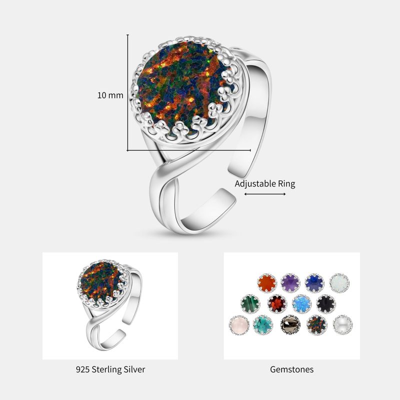 טבעת מתכווננת מכסף סטרלינג 925 עם שיבוץ אבן אופל שחור מלאכותי בקוטר 10 מ"מ בליטוש קבושון. עיצוב נקי עם נוכחות מסתורית וזוהר משתנה. הידעת אופל שחור מחזק ביטוי אישי, עוצמה פנימית והגנה רגשית.