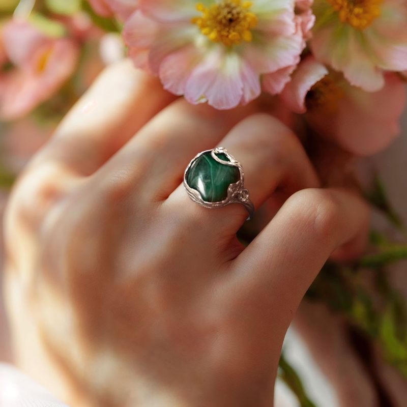 טבעת כסף מתכווננת משובצת אבן חן ירוקה ומרשימה מסוג מלאכית, מתאימה לכל מידה ולכן גם נהדרת כמתנה, עשויה בעבודת יד ישראלית מקורית כחול-לבן, עם הקפדה על פרטים והמון אהבה. טבעת בעלת נוכחות המוסיפה צבע ומשתלבת עם כל הופעה.