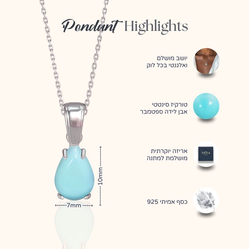 תליון טיפה קלאסי כסף טורקיז מלאכותי
