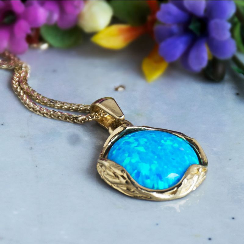 תליון מעוטר במסגרת זהב 14 קראט אבן אופל כחול