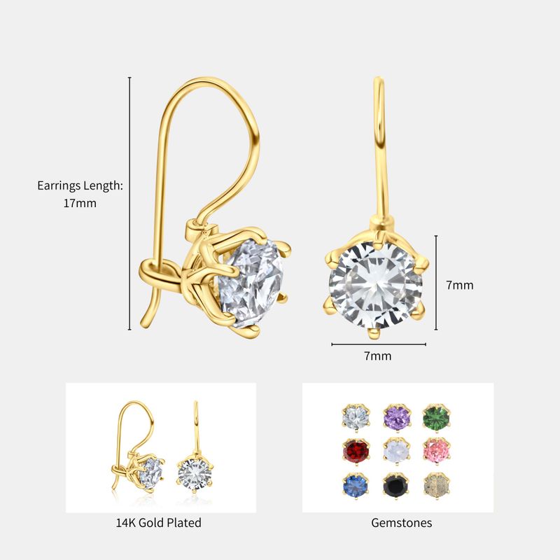 עגילים תלויים בציפוי זהב, משובצים באבן זירקון לבנה בקוטר 7 מ"מ. התכשיט הקלאסי הזה מעניק מראה מעודן ונשי, ומשתלב נהדר עם כל הופעה, יומיומית או חגיגית.