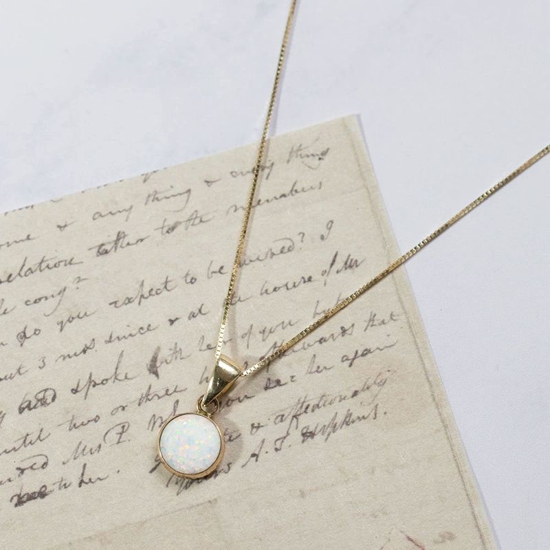 Круглый кулон из 14-каратного золота с белым опалом.